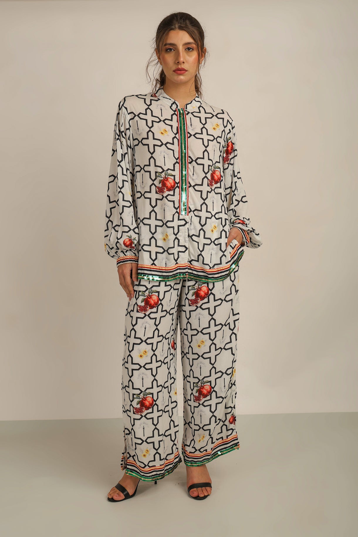 Indulge in luxury with our MARRAKESH PALAZZO PANTS. These beautiful palazzo pants feature a fully lined design with a comfortable, back-elasticated waist and pockets. The exquisite Moroccan-inspired print and contrast stripe border, adorned with sequins, adds a touch of sophistication to any outfit. Elegant and exclusive, these pants are a must-have for any fashion-forward wardrobe.