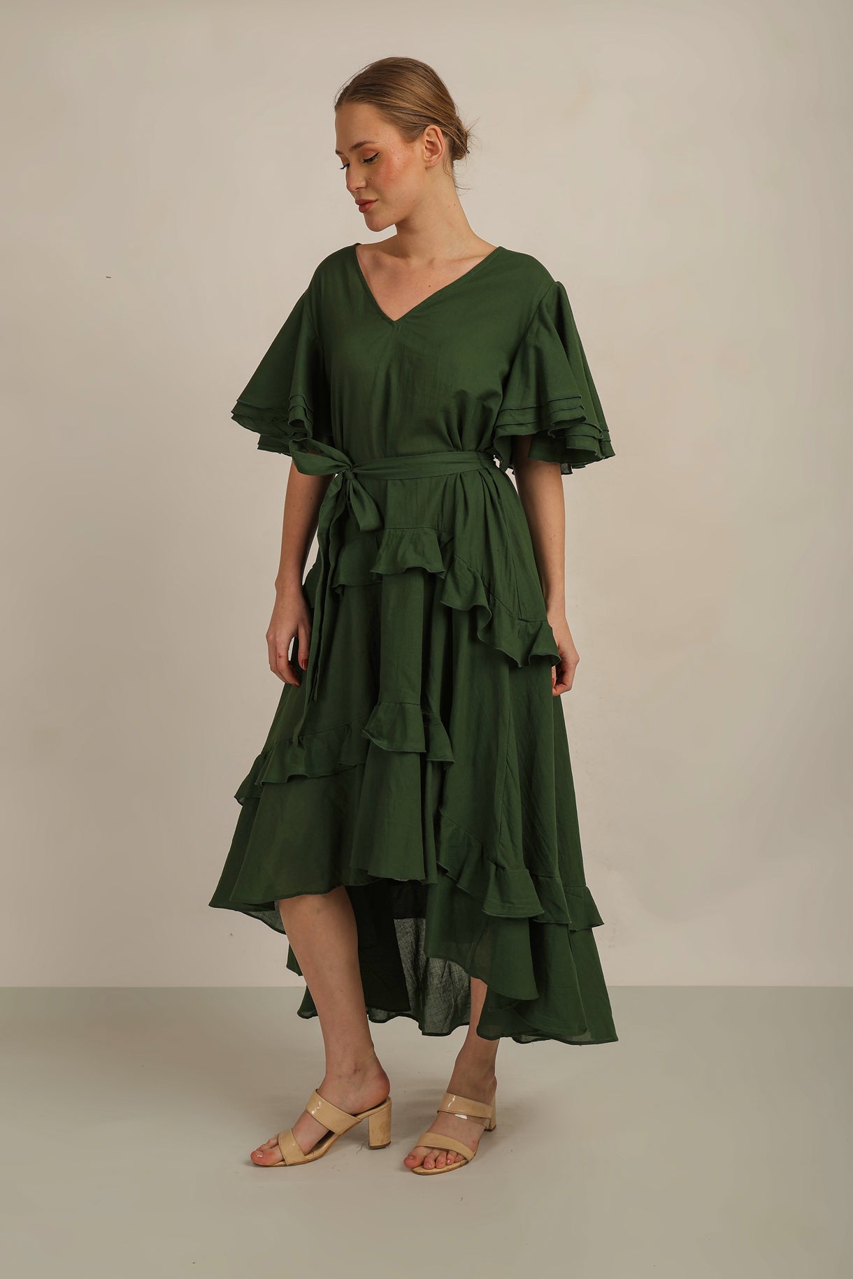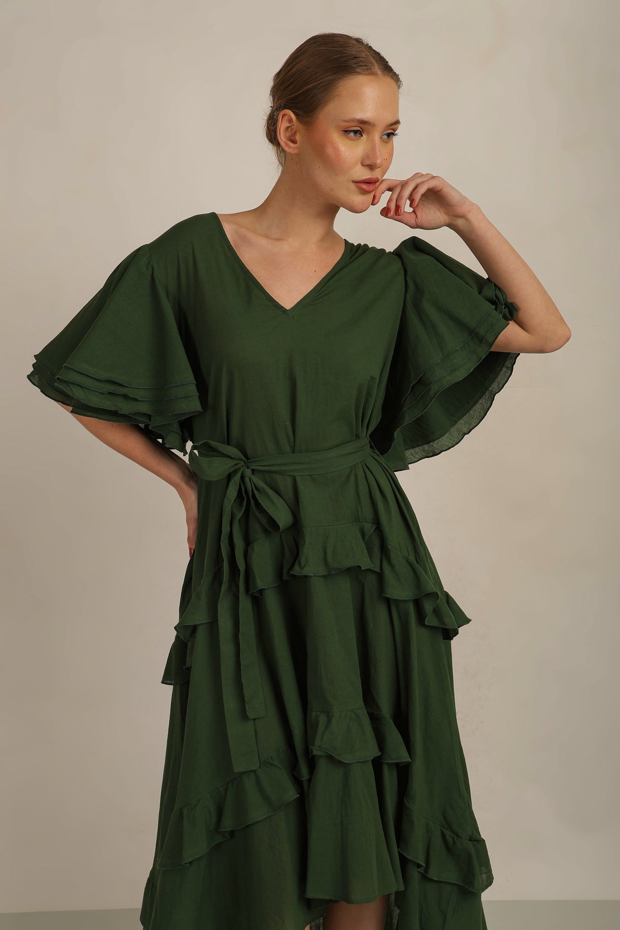 Have a smashing time in the SAMMY LISA DRESS! This beautiful dress features a lovely shade of green in a style that is flattering to wear. The triple layer flounce sleeves add a fun and flirty element, while the sash belt cinches in at the waist for a flattering fit. And yes, it even has pockets for all your essentials!