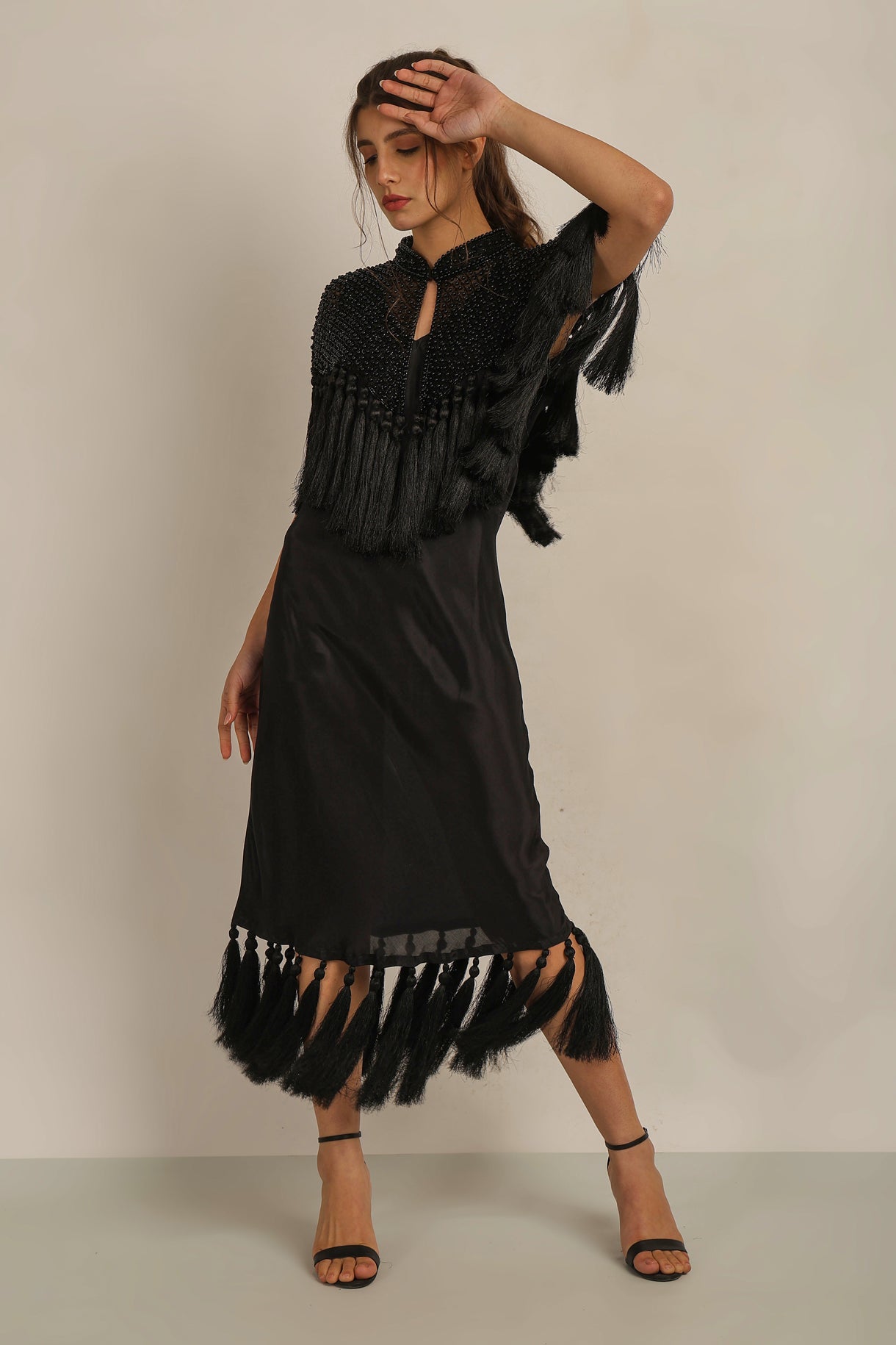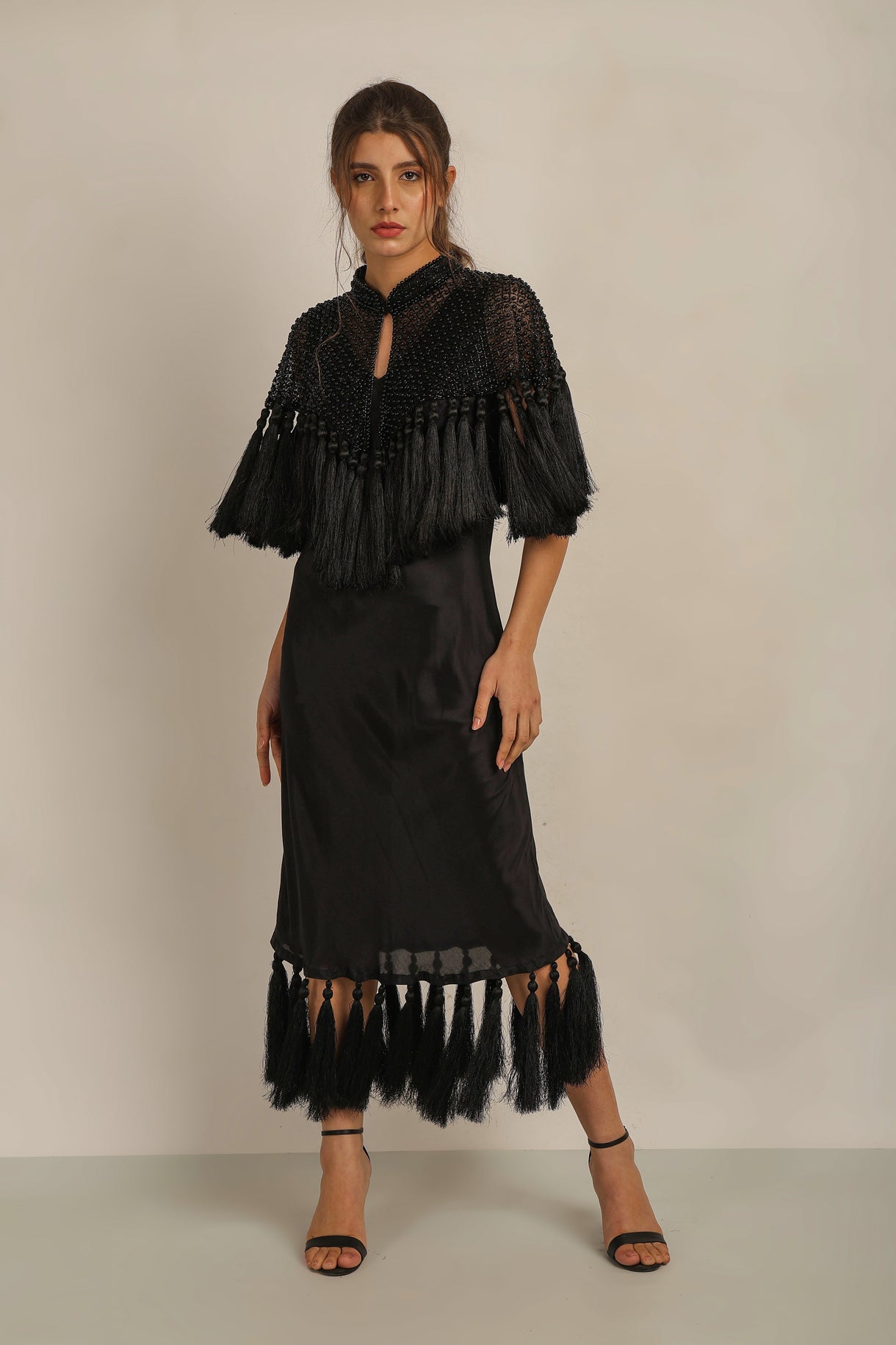 ZAZA BEADED/TASSEL CAPE -BLACK