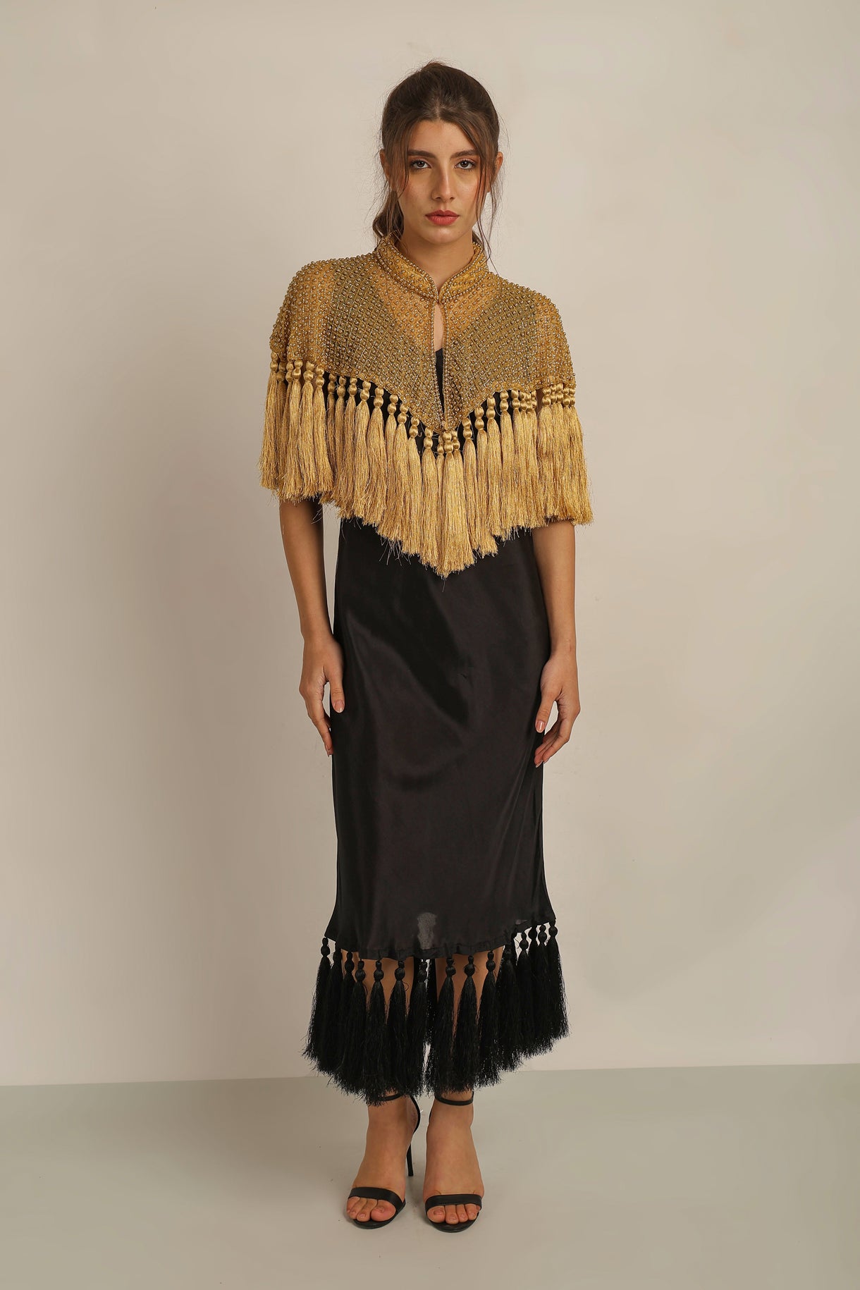 ZAZA BEADED/TASSEL CAPE - GOLD