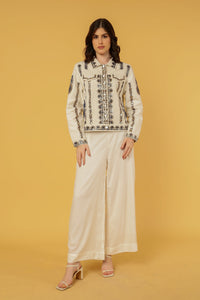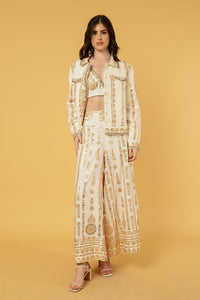 ZIGGY CROPPED JACKET IVORY WITH GOLD APPLIQUE
