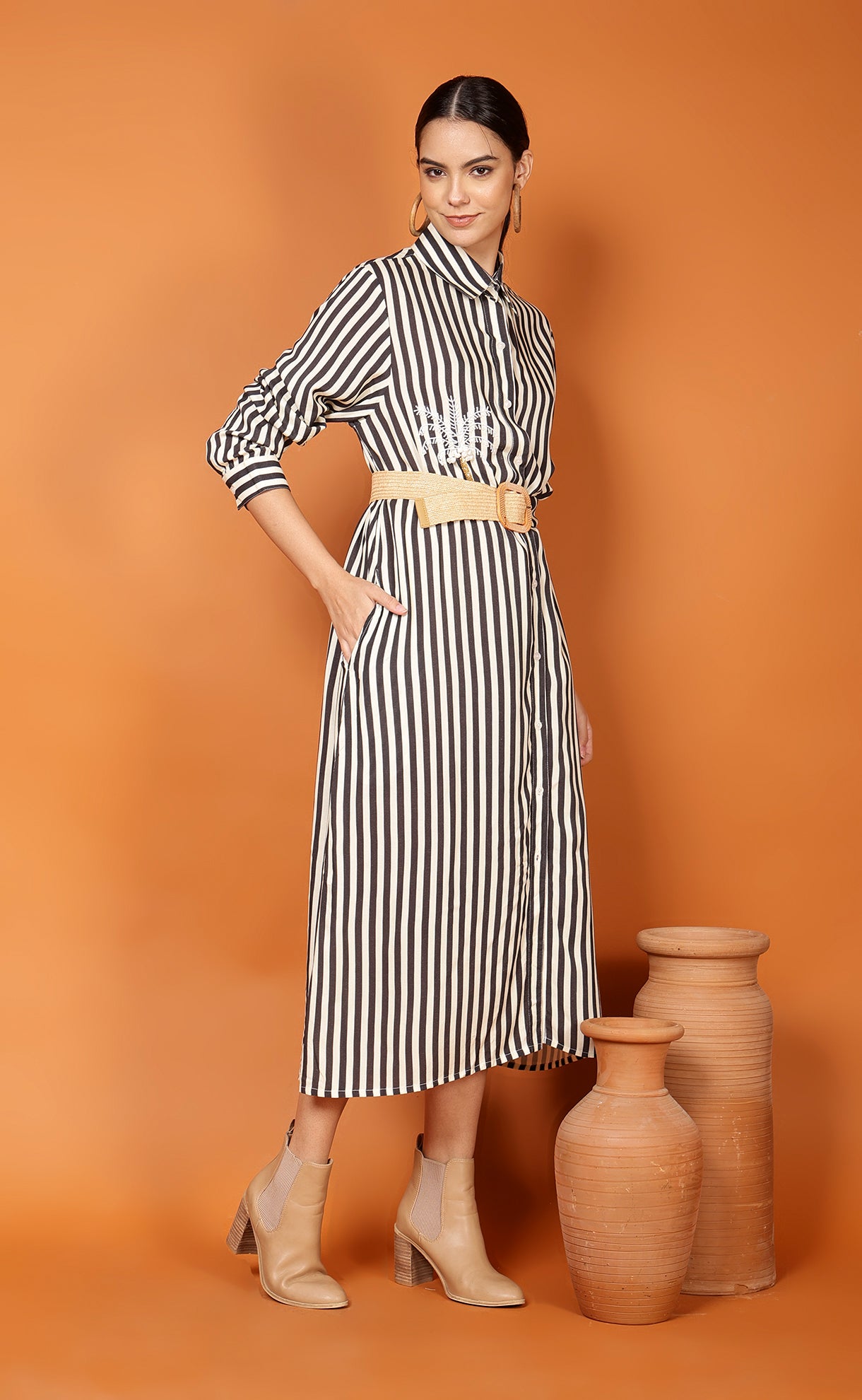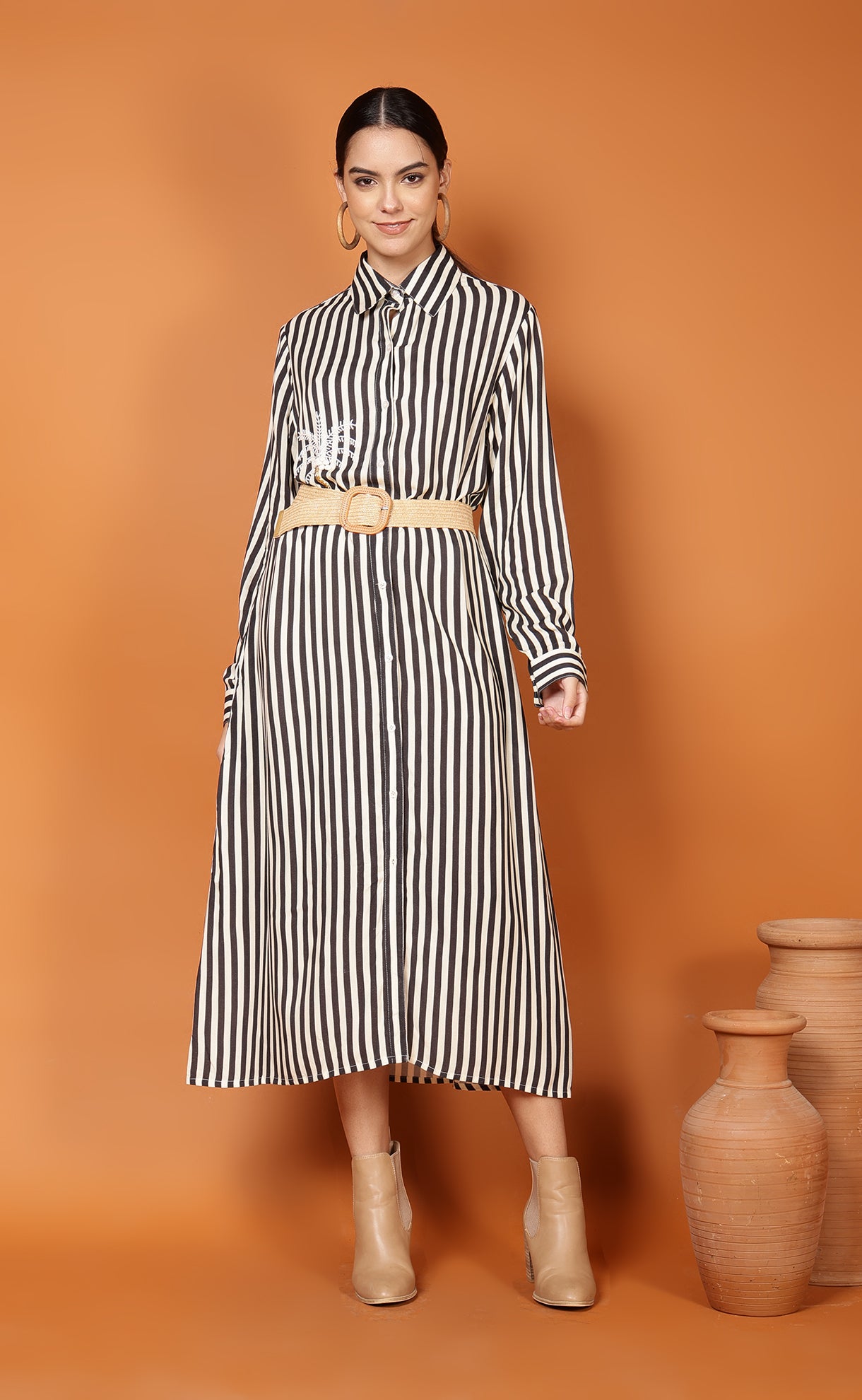 DUBAI STRIPES SHIRT DRESS, BELT, SINGLE SEQUIN PALM
