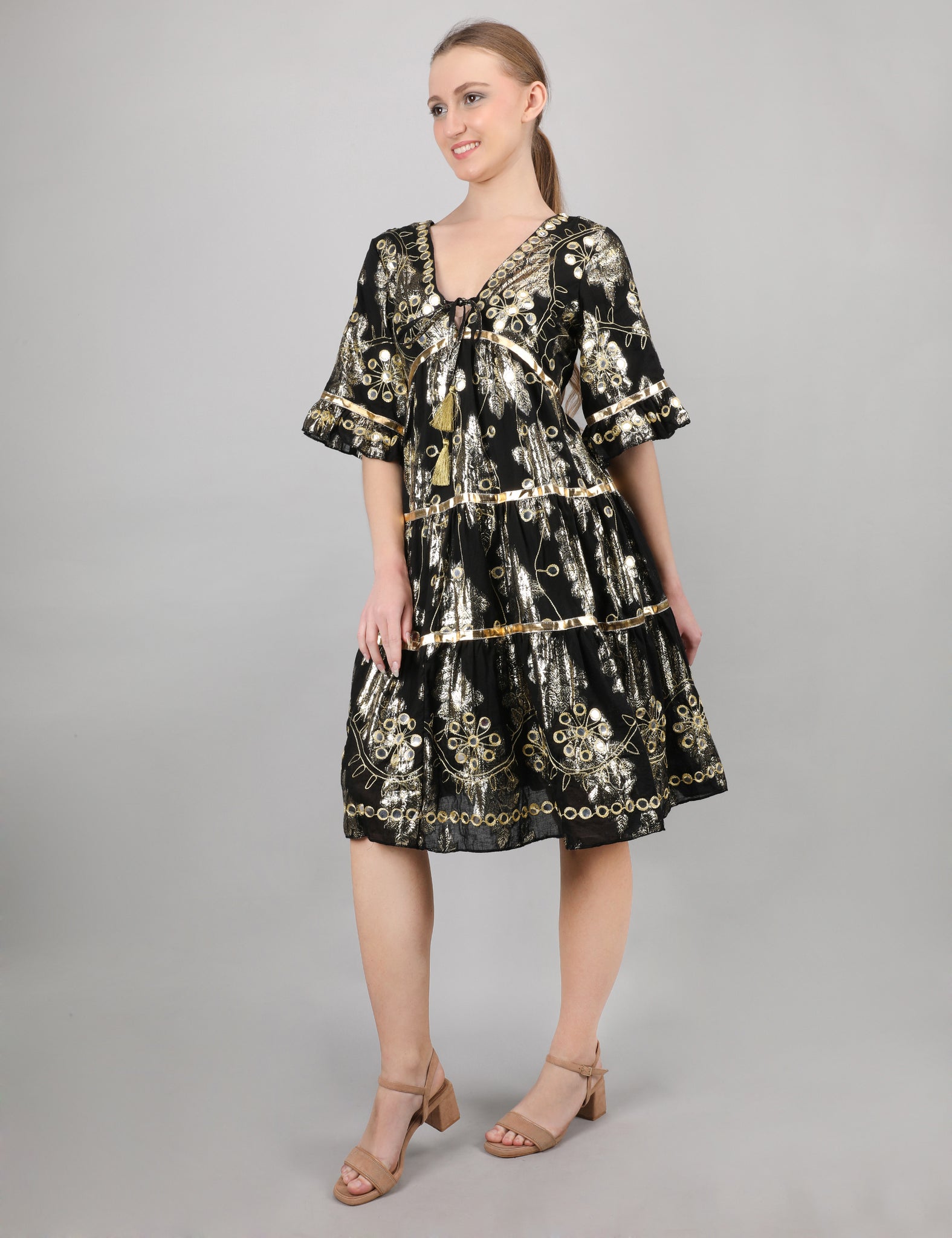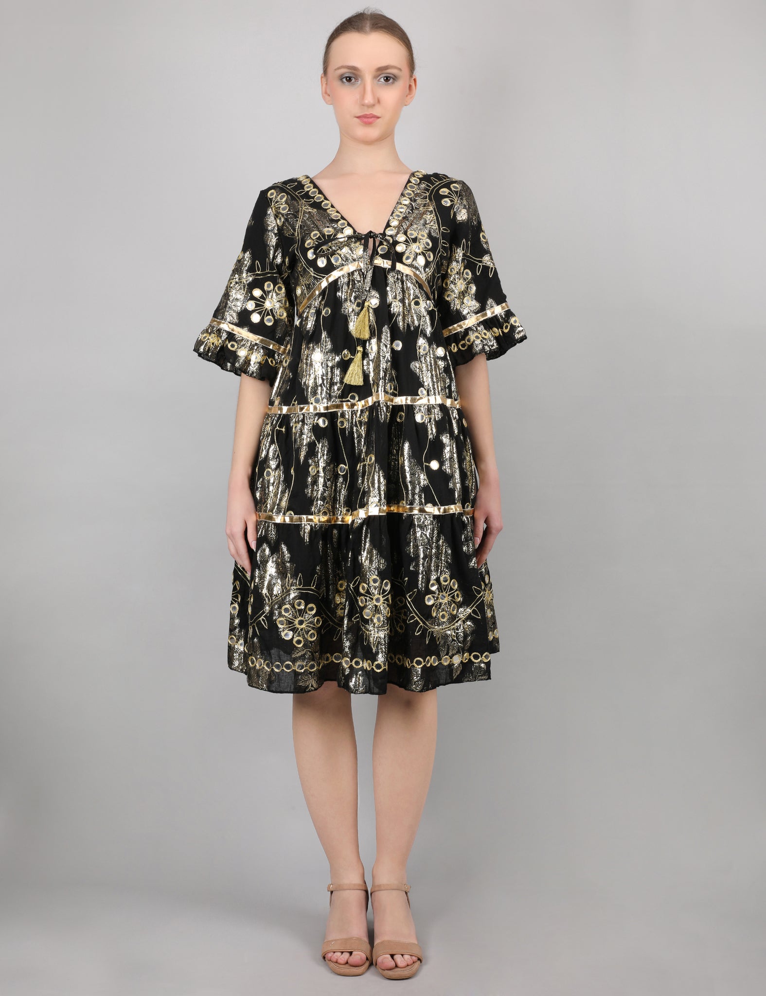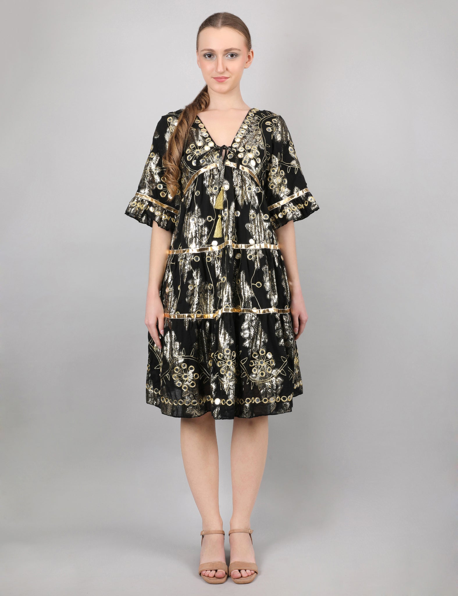 Add a touch of sparkle to your wardrobe with the LARA JULIETTE PINK ⁰dress. Made from gorgeous Lurex jacquard fabric, this dress features reflective faux mirrors for a hint of playful bling. With pockets and   fully lined, it's perfect for any occasion.