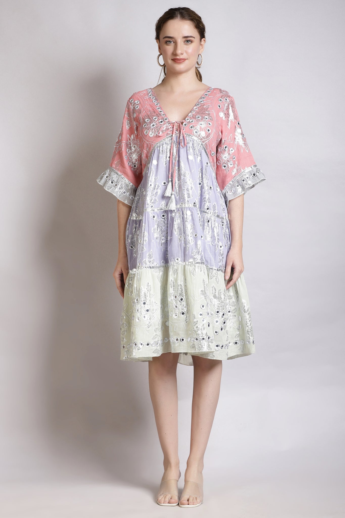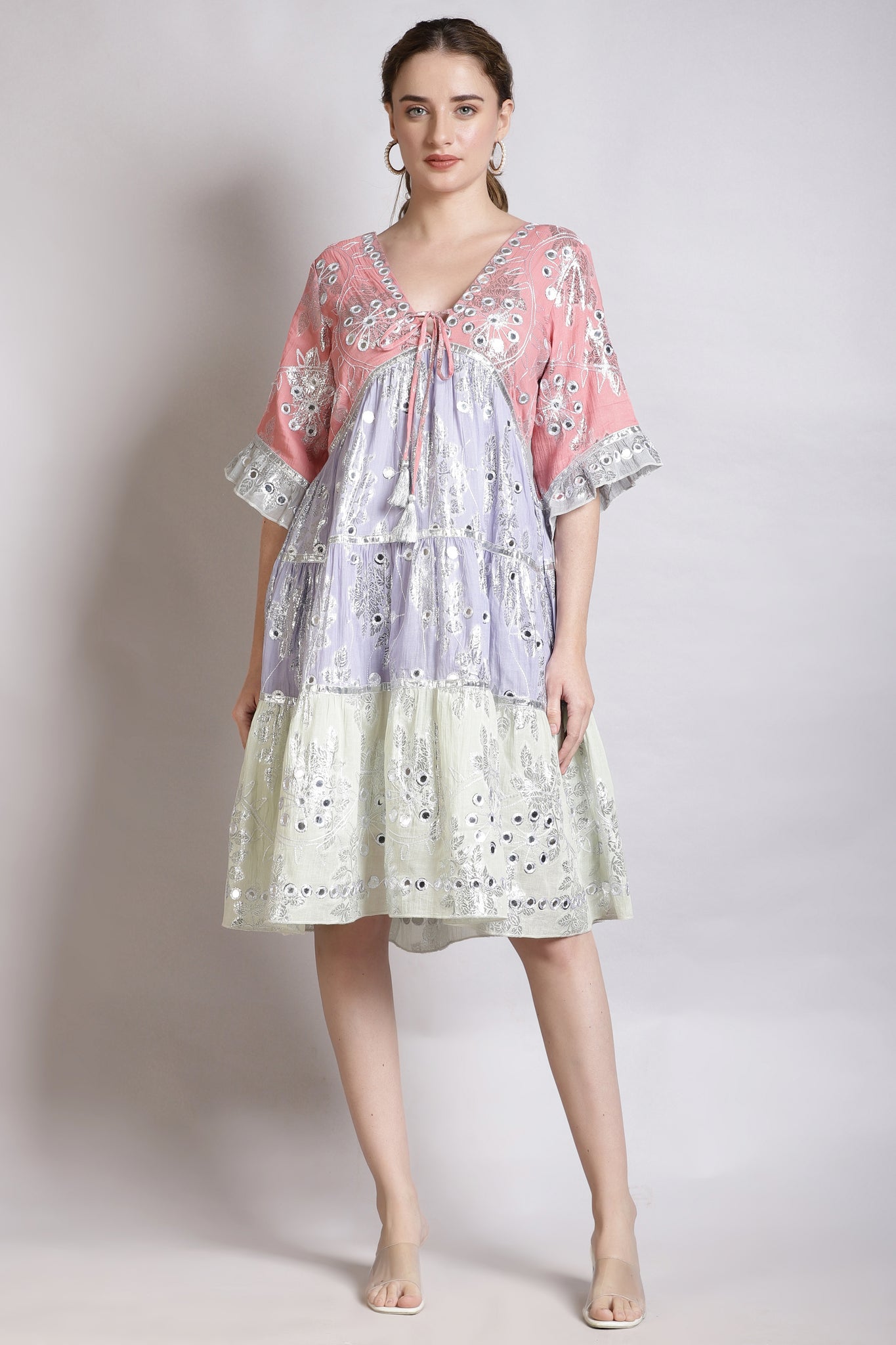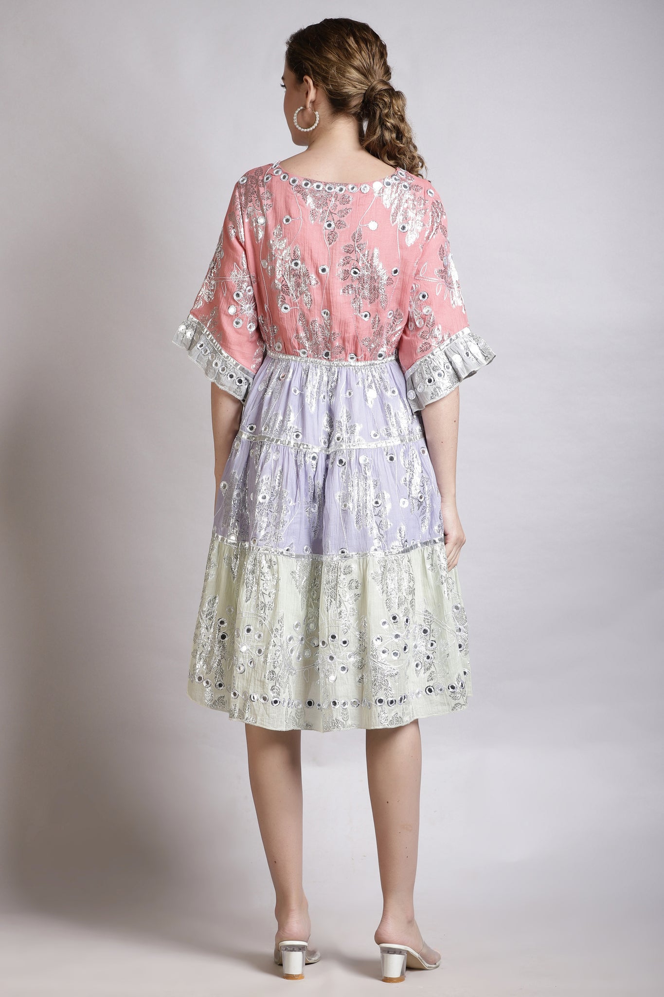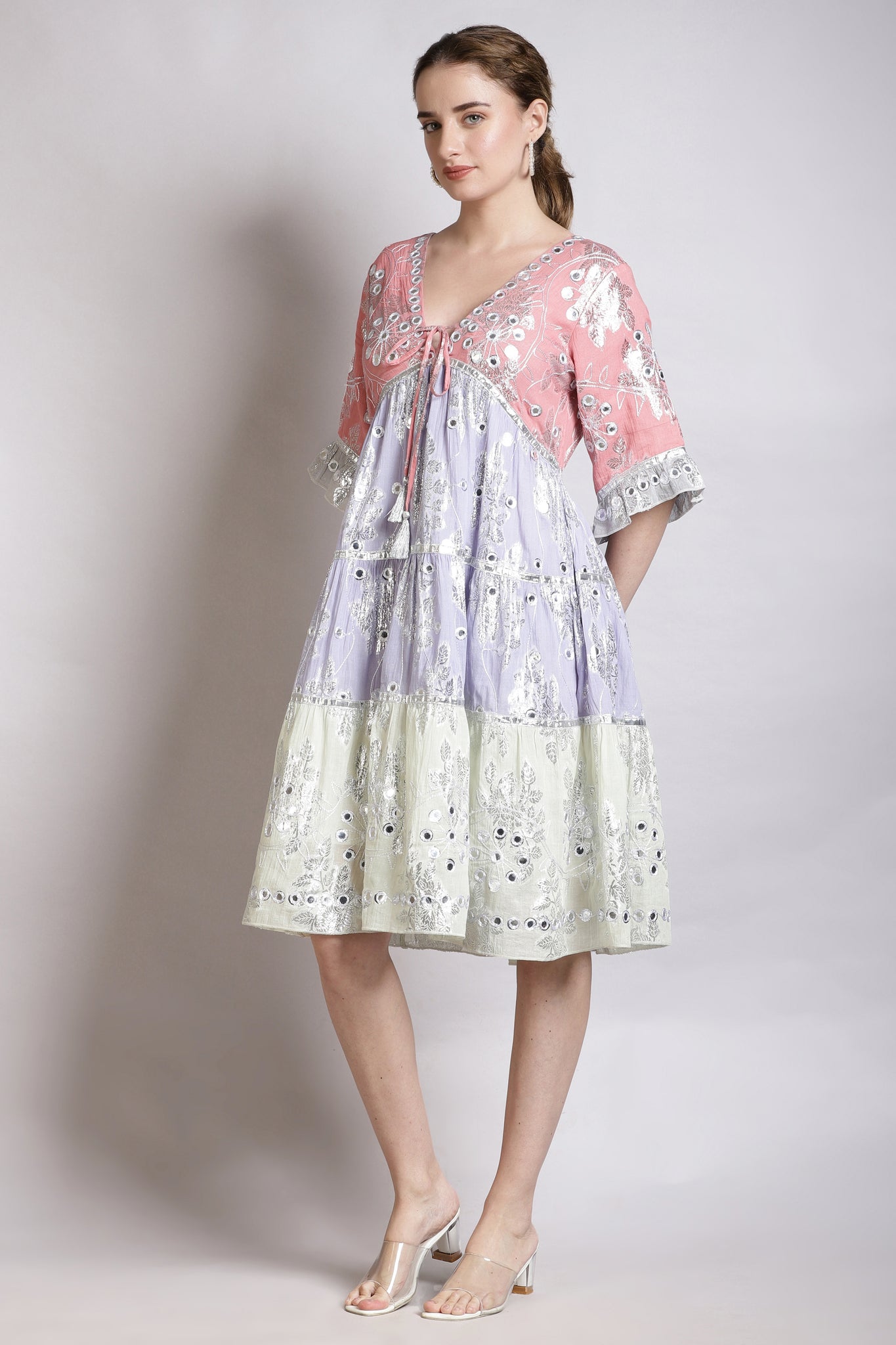 Add a touch of sparkle to your wardrobe with the LARA JULIETTE PINK COMBO dress. Made from gorgeous Lurex jacquard fabric, this dress features reflective faux mirrors for a hint of playful bling. With pockets and   fully lined, it's perfect for any occasion.